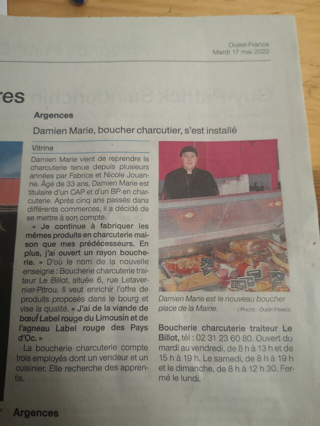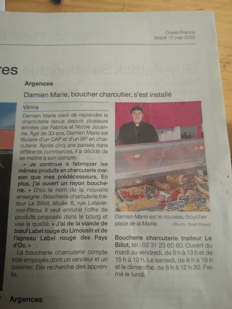 Diplômé en boucherie et en charcuterie nous vous proposons des plats cuisinés de la charcuterie maison ainsi que de la viande de bœuf du Limousin label rouge blason prestige de l'agneau du Pays d'oc label rouge et du porc Normand.